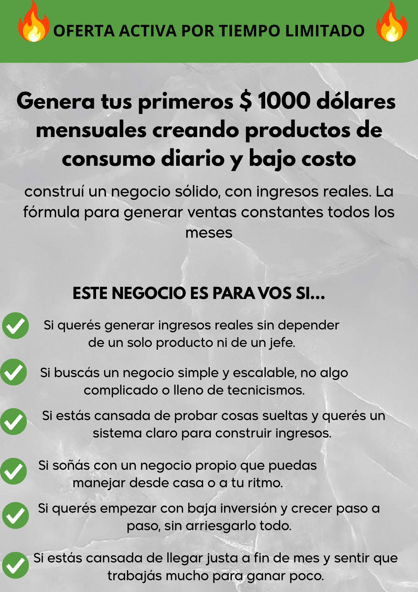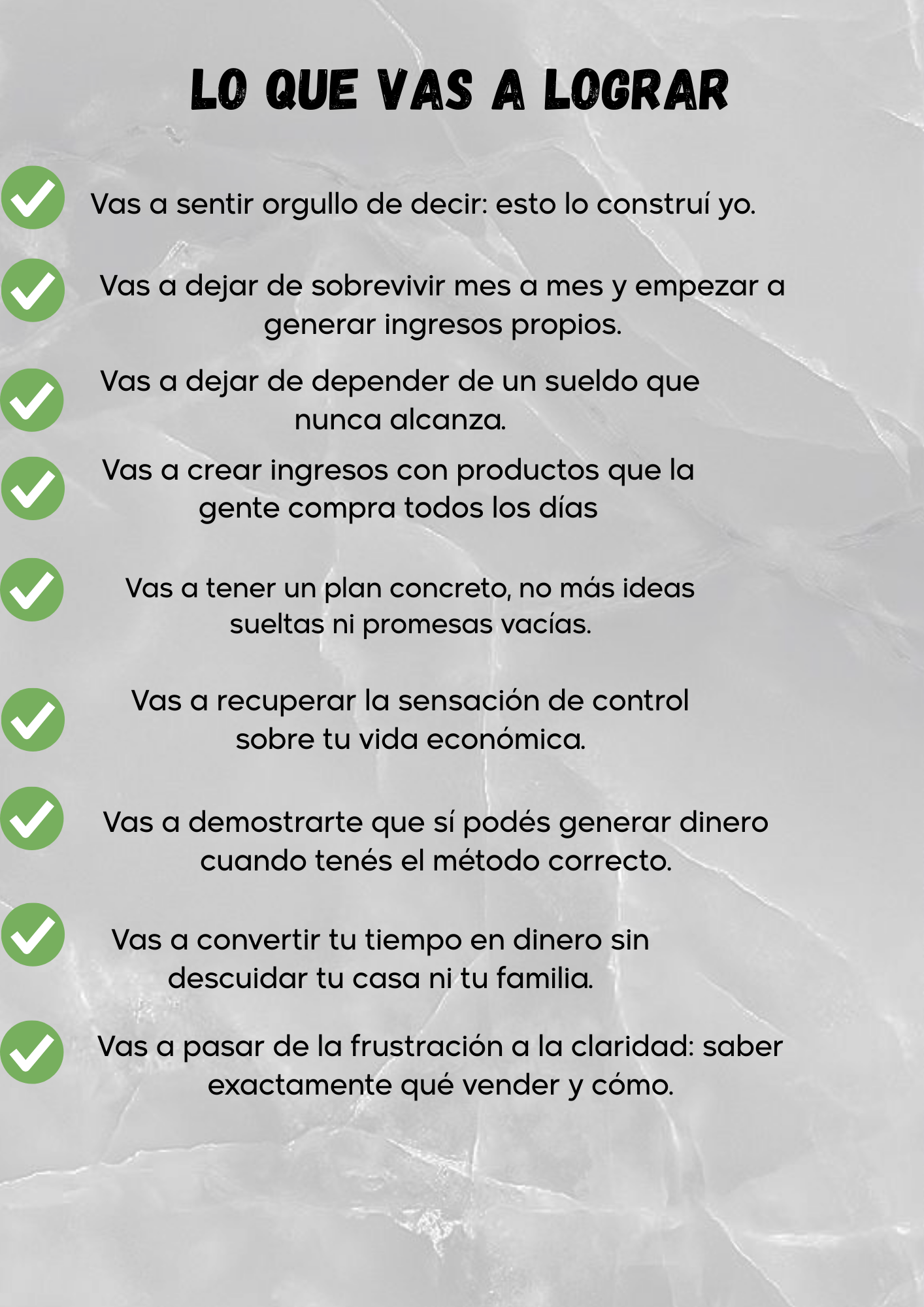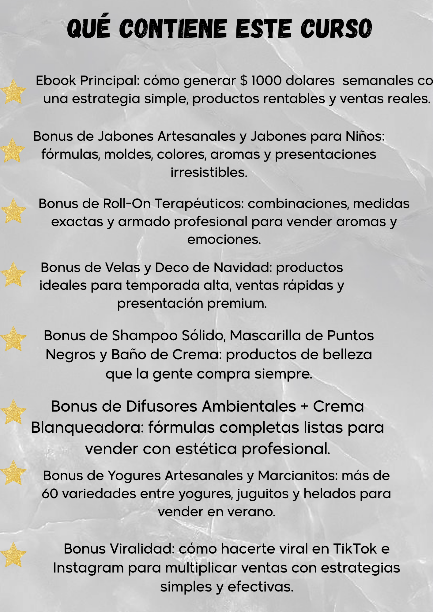 Porque no solo te enseña a emprender: te da productos reales, ideas de negocio, guías de marketing y estrategias probadas para generar ingresos semanales estables.
